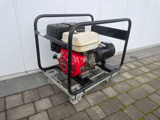 Powerful portable power generator for construction, garden or emergency power supply. The EUROPOWER EP 4100 is equipped with a reliable Honda GX160 petrol engine. Robust construction and easy starting mechanism. 230V output, air-cooled, portable version with bracket frame. Ideal for craft use, agriculture or export. Due to the stable output of up to 4.1 kVA in continuous operation, the generator offers enough capacity for power tools and lighting systems. Oil level control available.