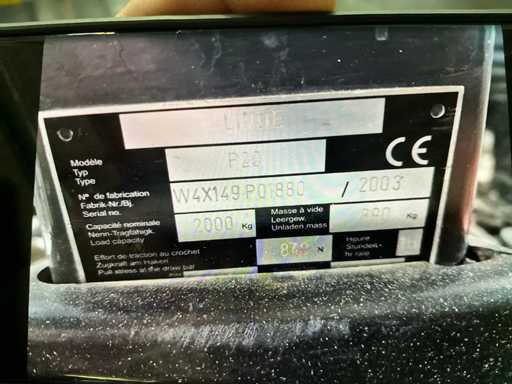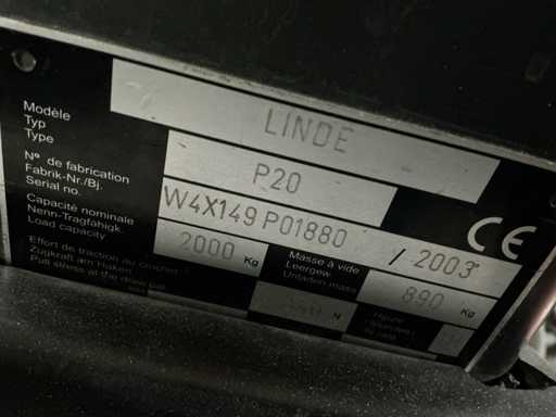 Vehículo: LINDE modelo P20, número de serie W4X149P01880, año 2003.