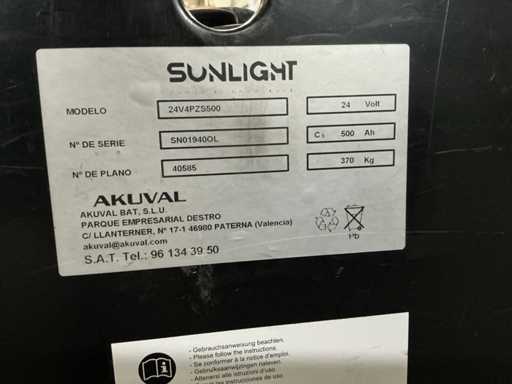 Batería: SUNLIGHT modelo 24V4PZS500, número de serie. SN01940OL, 24 V, 500 Ah, aprox. 370 kg.