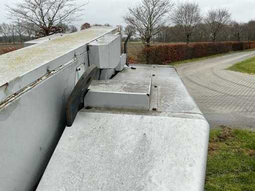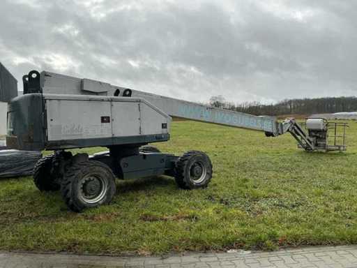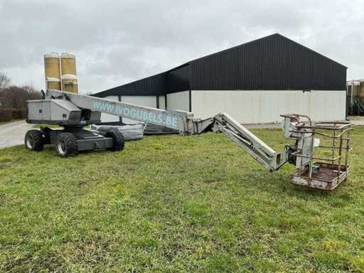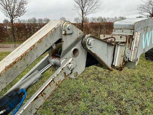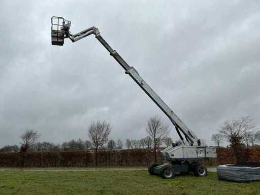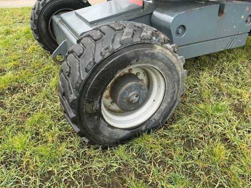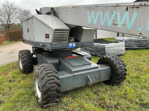 Equipped with: working height 23.00m, floor height 21.00m, horizontal working range 17.800m, max. lifting capacity 250kg, basket size (LxW) 1.80x0.75m, basket rotation, basket leveling, set-up/working width 2.43m, transport dimensions. (LxWxH) 11.57x2.43.2.64m, total weight 14.700kg, max. tilted 5°, four-wheel drive.