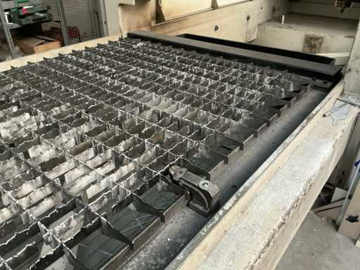 Equipped with cutting laser FANUC C2000, control GE Fanuc, 2x safety pole with sensor SICK, chiller THERMOTEC and extraction DONALDSON TORIT DCE, Maximum plate size: 3000x1500mm, can be professionally dismantled by copper, except gas bottle