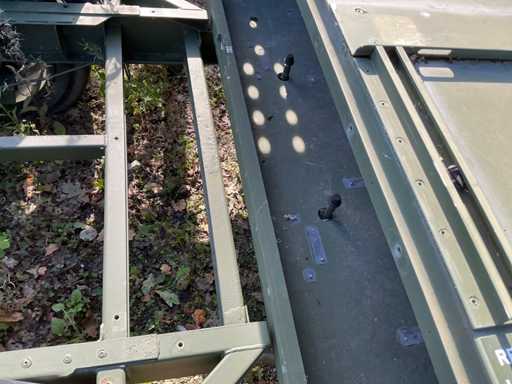 Max mass 1800kg, own weight unknown, equipped with lifting eyes, Knott axle, alloy rims with tire size. 255/55R18, adjustable Knott towbar (eye diameter 7cm), 4 support legs, no license plate registration, no CVO/COC,