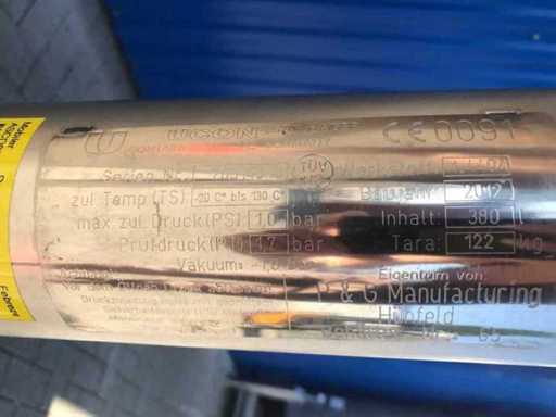 2012 UCON Container Systeme (Germany) Vertical Pressure Vessel Stainless Steel Pressure Vessel 380 Liters 10 bar