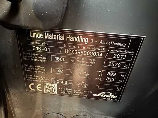 2013 Servicio + UVV 12/2026 Linde E16 1.600 kg Cabina triple 3ª + 4ª con horquilla de válvulas ajustada por horquilla 4.418 horas