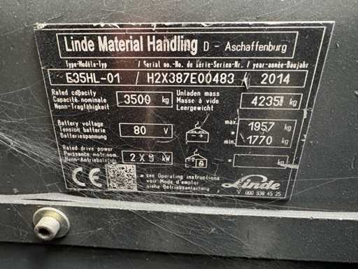 2014 Service+UVV 06/2026 Carretilla elevadora eléctrica Linde E35 3.500kg Triplex 483cm 8.903 horas E30 E40