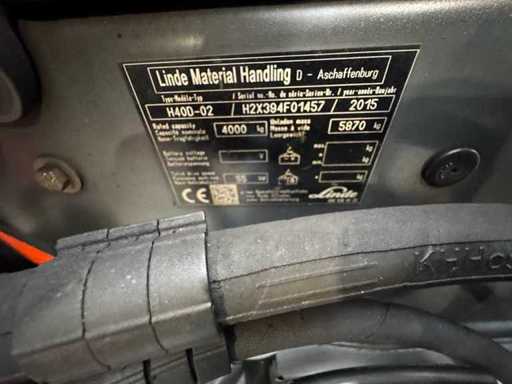 2015 Linde H40D 4.000kg 3.+4º de válvulas 190cm Horquilla reguladora diésel 15.904 horas