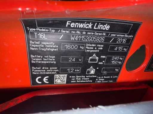 2016 Linde T16L Transpaleta Apilador de hormigas Carrera inicial 3,247 horas