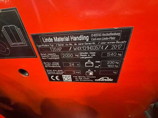 2017 S+UVV 07/2026 Transpaleta eléctrica apiladora Linde T20AP 2.000Kg hormiga