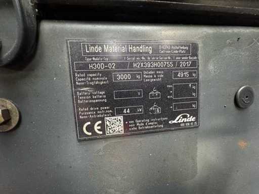 2017 UVV 03/2027 Linde H30D-02 EVO 3.000 kg Dúplex 495 cm Diésel de 4ª Válvula Carretilla Elevadora 7.128 horas