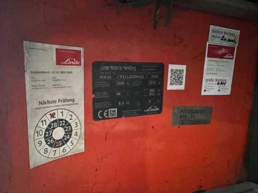 2018 Linde R16 1,600kg 3,+4º Regulador de horquilla de válvulas Triplex 556cm Carretilla elevadora eléctrica