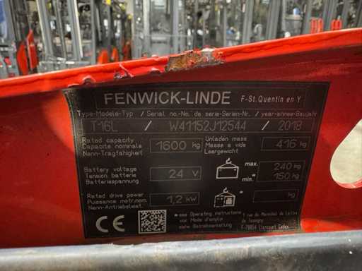 2018 Linde T16L Transpaleta Apilador de hormigas Carrera inicial 1,480 horas