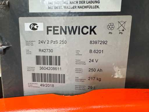 de servicio completo de Linde Batería: 49/2018 24V 250Ah, con buen rendimiento, medido a 24,7 voltios
