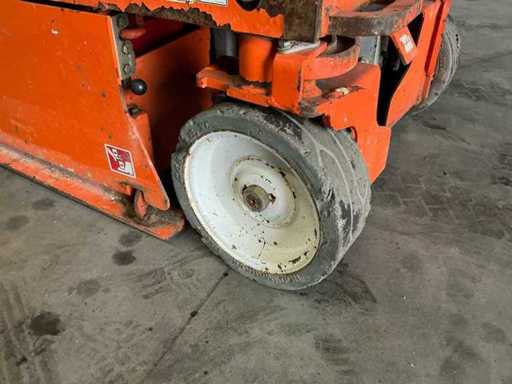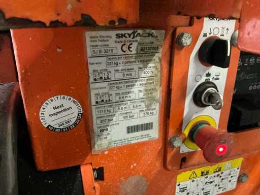 Equipped with: working height: 7.79 m, platform height (max.): 5.79 m, platform height (lowered): 0.99 m, Lifting capacity (total): 249 kg, lifting capacity (with extension): 113 kg, weight: approx. 1,170 kg, total width: 0.81 m, total length: 1.78 m, stowed height (rails up): 1.99 m - 2.1 m, stowed height (rails down): 1.64 m - 1.75 m, extension: 0.91 m, slope capacity: 30%, travel speed (stowed away): 3.2 km/h, travel speed (up): 1.1 km/h, non-marking tires, SKYCODED™ color-coded and numbered wiring, capacity: 2 persons, integrated ladder 220V, socket on platform.