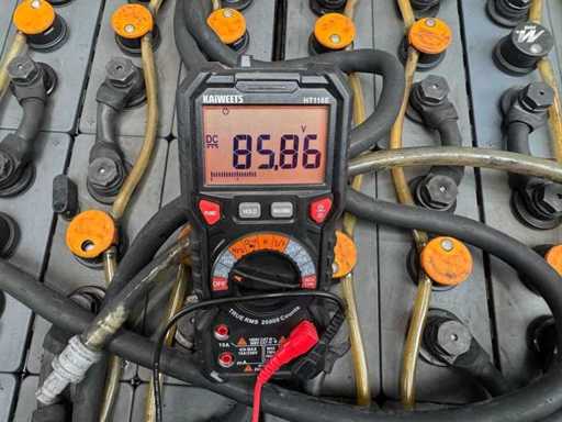 Voltaje en reposo medido sin carga con buena potencia de 85,86 V