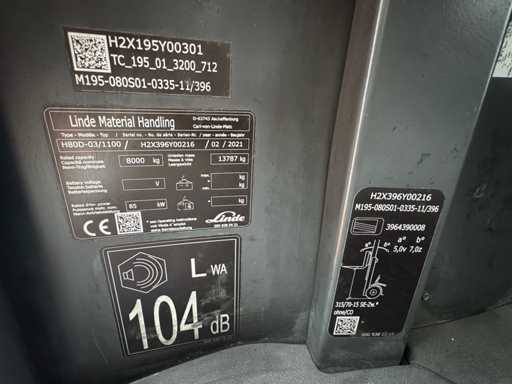 2021 Servicio + UVV 10/2026 Linde H80/1100D 3ª+4ª válvula con abrazadera rotativa carretilla elevadora diésel 9.913 horas