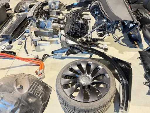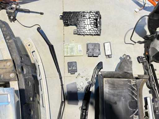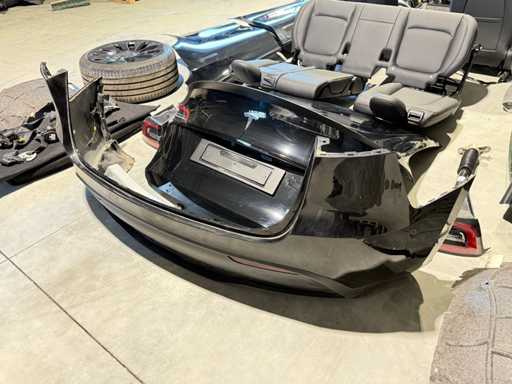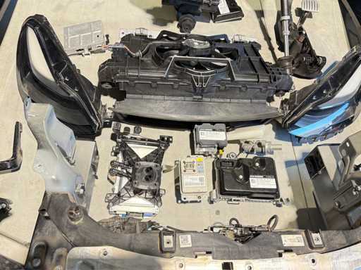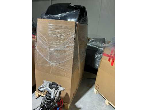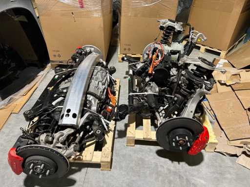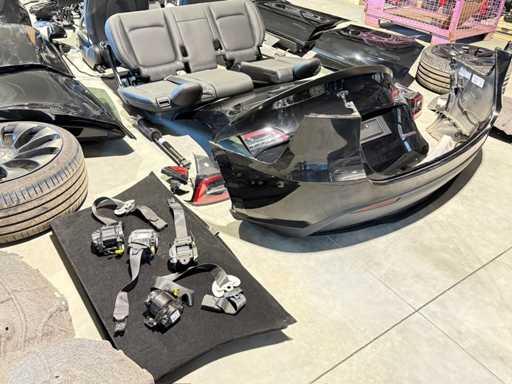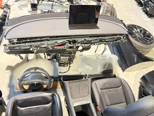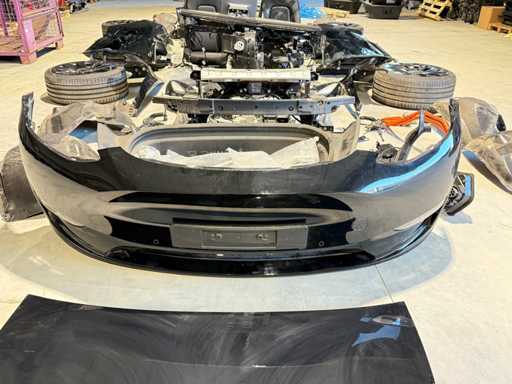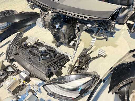 Recibirá un Tesla Y en partes, excepto el marco y las alfombras/paneles de plástico. Las piezas se cargan en 6 palets mediante carretilla elevadora (unos 4 metros de carga en el camión). En las fotos se puede ver un Tesla Y completo como ejemplo y en parte fotos de piezas duplicadas. Recibirá un Tesla negro como paquete de piezas sin marco, papeles y COC y alfombras/molduras de plasti.