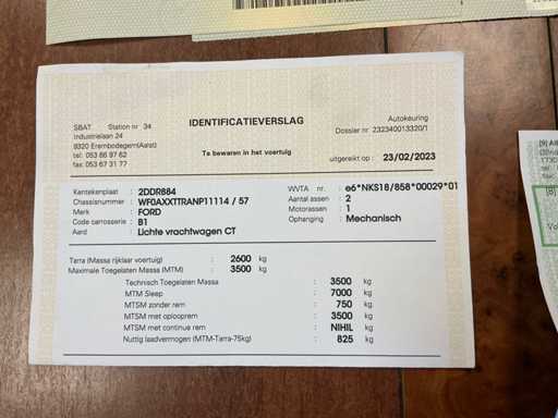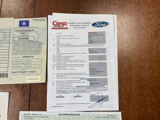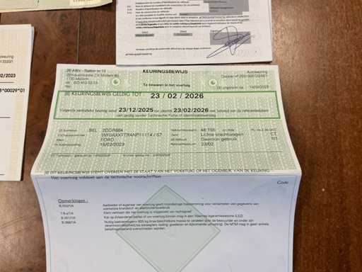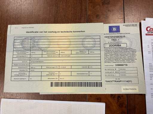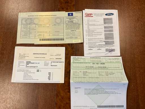 Documents present: registration certificate part 1 and part 2, identification report, certificate of conformity, inspection certificate.