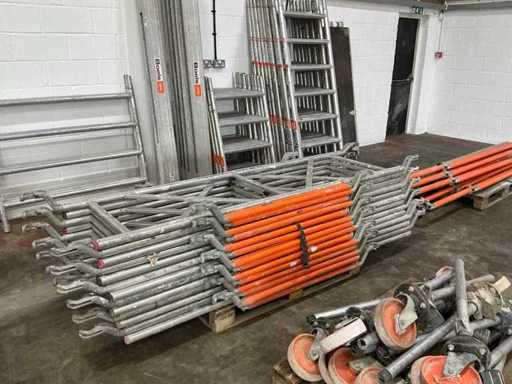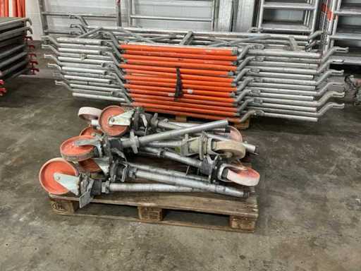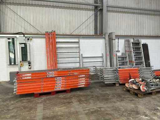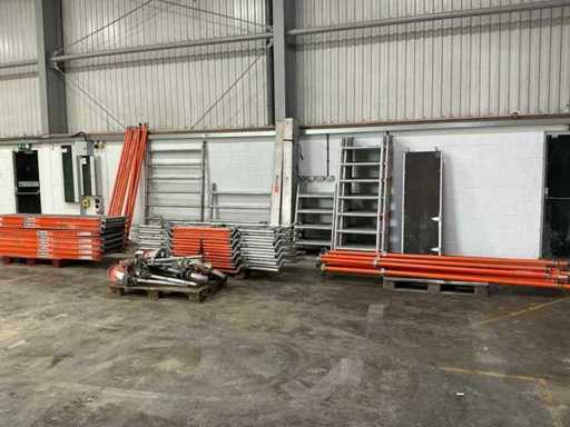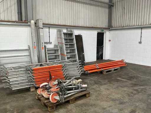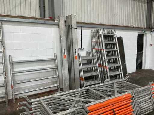 Decks (Trap door)2400 x 600mm Qty 8, 2100mm braces (Qty 9), 2000mm double width frames (Qty 2), 1000mm double width frame (Qty 2), 2400 x 1400mm double width tow board, 2400 x 850mm single width tow board (Qty 4), 1000mm single width frames (Qty 10), 2000mm single width frames (Qty 12), 1800 x 600mm platforms with trap door (Qty 3), 3000mm closed stabilisers (Qty 12), 2400mm advanced guard rails (Qty 13), Adjustable leg wheels (Qty 14). Collection by appointment only on Wednesday 20 and Thursday 21 May 2026 from 09:00 to 16:30 (BST). This item is sold ex-foundation and consequently, all the logistical arrangements, including dismantling, packing loading the goods, transport, customs, and delivery to the final destination, are the responsibility of the Buyer.