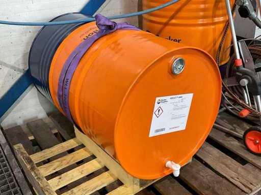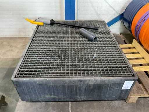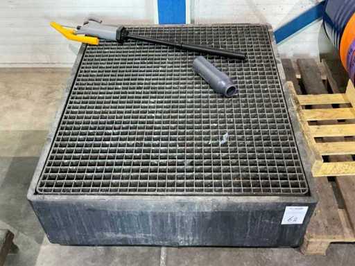 Tamaño de la bandeja de goteo: 1200x1000x380mm, (1x) bomba de tambor Mixtron, tipo: MX.150, (2x) tambores de tambor, (1x) carrete de manguera de agua Gardena.