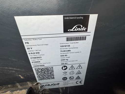 de servicio Linde Batería 27/06/2023 80V 930 Ah, muy buen rendimiento medido a 83,3 V