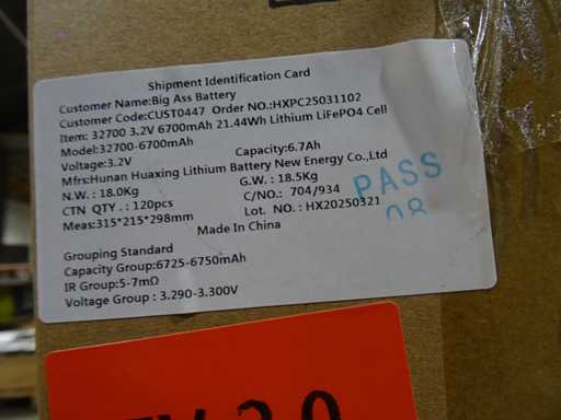 3,2V, 6700mAh, 21,44Wh.