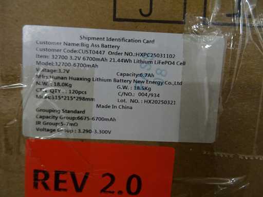 3,2V, 6700mAh, 21,44Wh. Se refiere a 4 palets. Recogida al principio del día de recogida