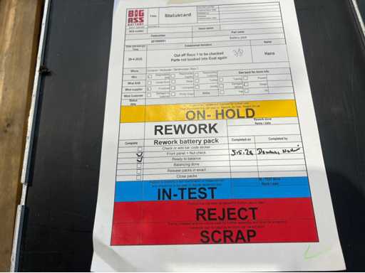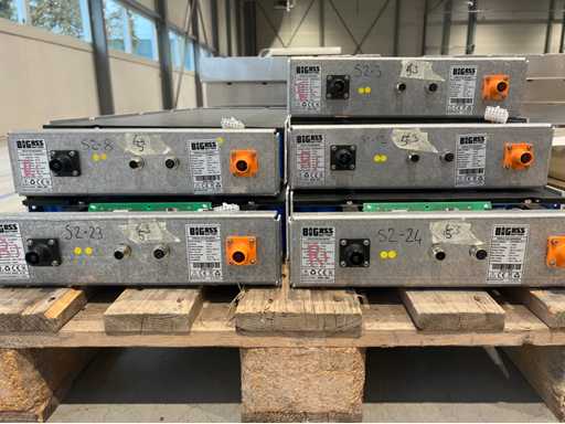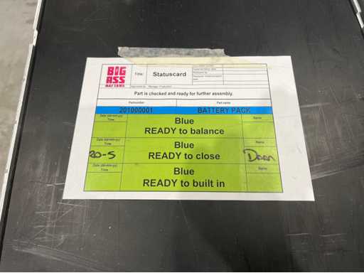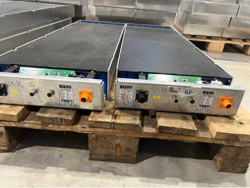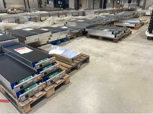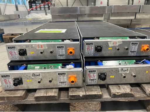 Un total de 7 palés, en varias fases de producción y pruebas. LiFePO4