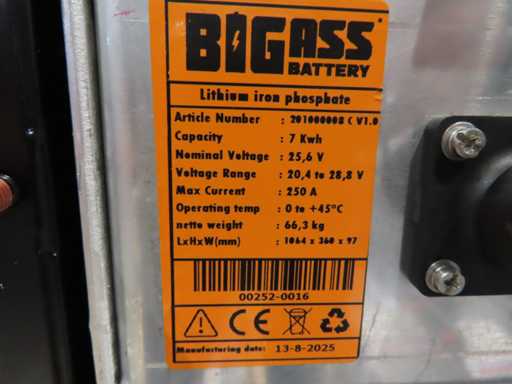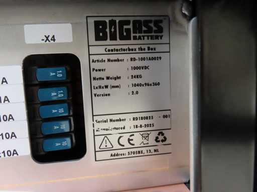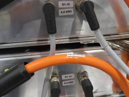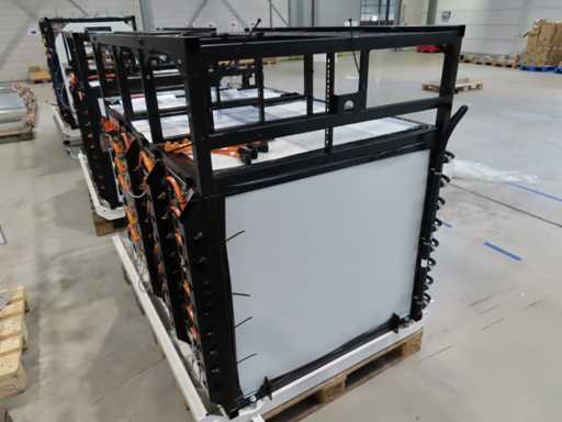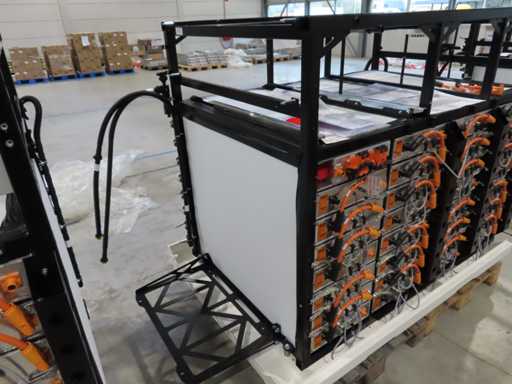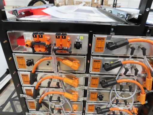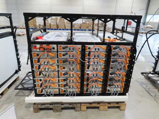 Sistema de almacenamiento de baterías en construcción, compuesto por una batería de 31 x 6,8 / 6,9 kW en el bastidor con varios accesorios. Dimensiones aproximadas: 142x215x138 cm (altura xxp)