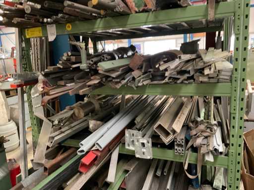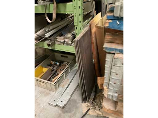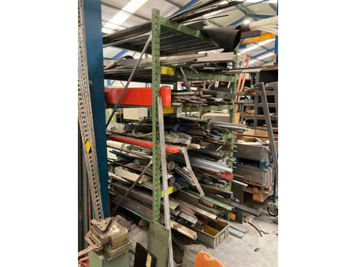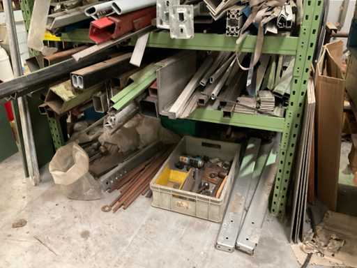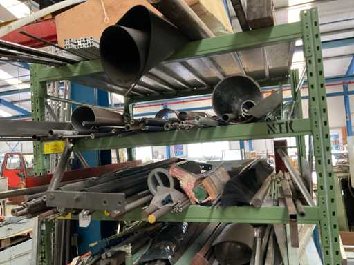 2 montantes de 250x110 cm; y 12 vigas de 148 cm de largo; con estantes de acero; incluido el contenido y el perfil del tubo; en acero inoxidable; Hierro y aluminio