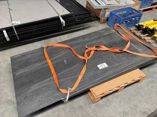 Machine No. 1036-10602, plate diameter approx. 1640 mm, winding height max. approx. 1800 mm, width of the film roll approx. 500 mm, scale with digital display, weighing range approx. 1 - 2000 kg, access ramp (The article is in condition as existing and untested. The article is sold from the foundation and without content/material! There are no pallets available for dismantling and loading the item, other packaging material on site and the buyer has to rent a forklift, tank rollers, machine jacks, etc. at his own expense if necessary!)
