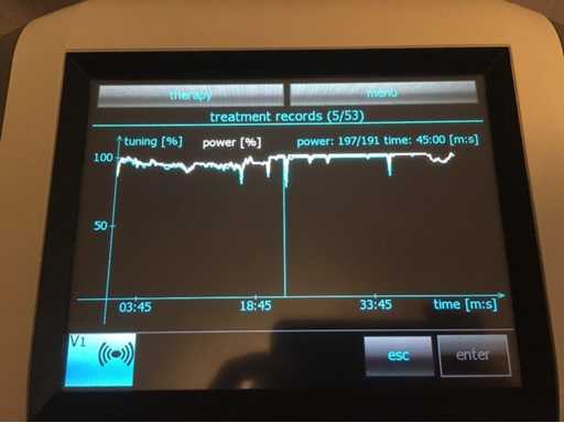 Incluye brazos aplicadores ajustables, panel de control de pantalla táctil con seguimiento del tratamiento (gráfico de encendido/sintonización, tiempo de sesión) y conectividad inalámbrica.