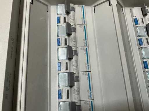 Caja de distribución Hensel 70x29cm con 15x FI hager ADS 916D, 1xMBS116 y portatornillos como nuevo