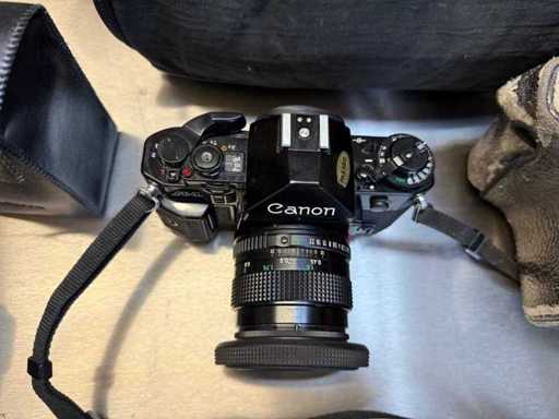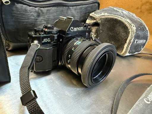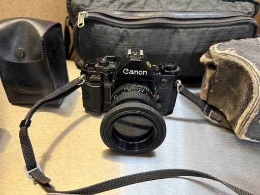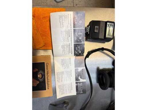 Camera ? CANON A1? Analogue SLR camera with Canon flash unit and FD 50 mm 1.4