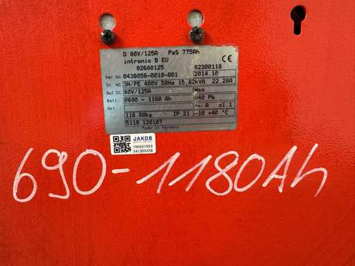 Cargador cargador de carretilla elevadora Linde 80V 125A 690-1.180Ah 2014