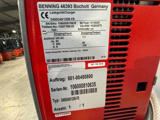 Cargador eléctrico Benning 48V 120A 600-900Ah cargador elevador eléctrico 2020