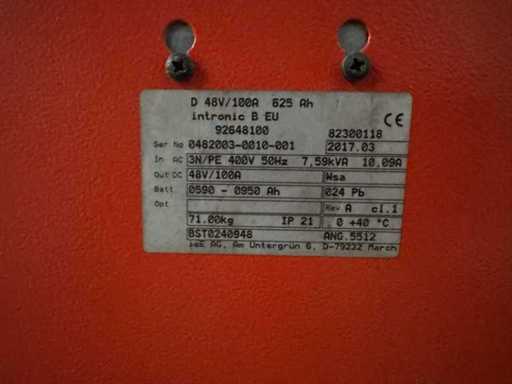 Cargador eléctrico Linde 48V 100A 590-950Ah 2017 cargador elevador eléctrico
