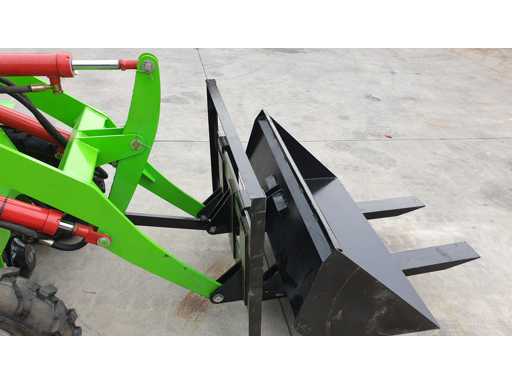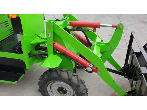 Cargadora eléctrica de ruedas, doble motor, tracción 4x4, equipada con cubo, horquillas y cargador, nunca se utilizó