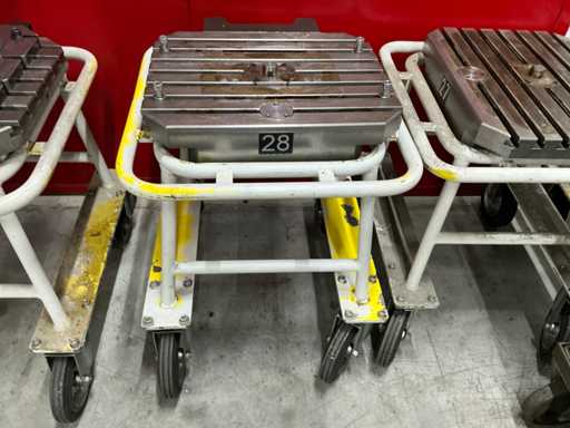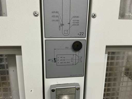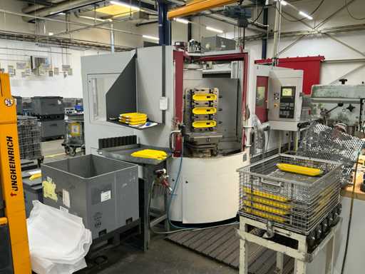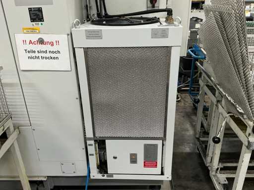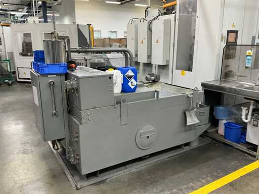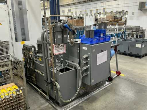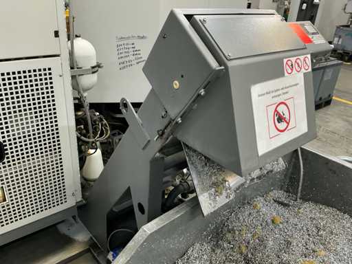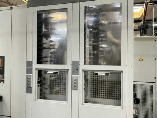 Depósito de cadena de herramientas de 180 plazas, refrigeración interna, sistema de palet con 8 palets, filtro de banda Knoll, sistema de palets con 17 palets de 400 x 500 mm.