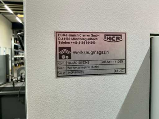 Depósito de herramientas 240 plazas, refrigeración interna, sistema de palets con 17 palets de 400 x 500 mm., filtro de banda Knoll, control de temperatura del refrigerante Hyfra