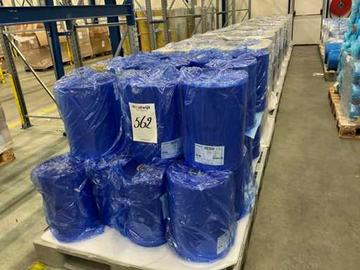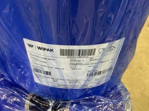 Ancho de rodillo 426 mm, longitud por rollo 500 metros, aproximadamente 170 rollos, en 13 paletes