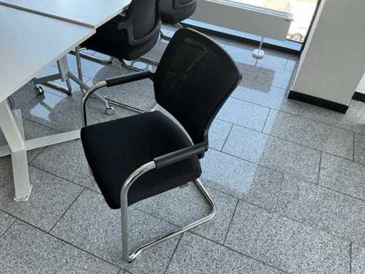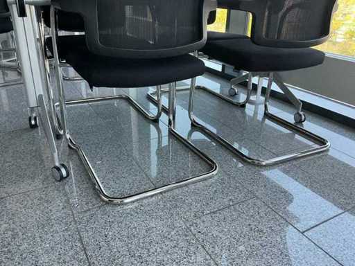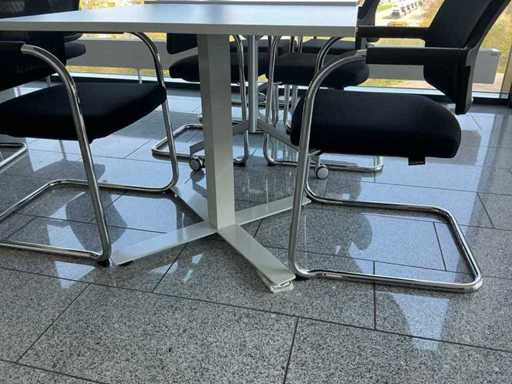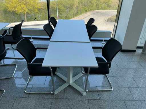 Contenido: 1 x mesas 95 x 95 x 73 cm, 1 x 160 x 95 x 95 cm (L/A/H), 6 x silla de oficina negra en voladizo