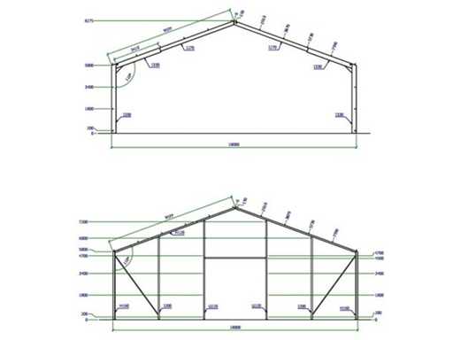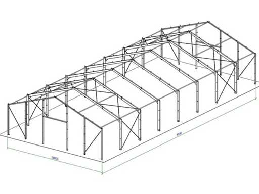 7 cerchas intermedias: 2 x columna I330 y los primeros 3,40 metros de la viga del techo I330 y el resto de la viga del techo I270