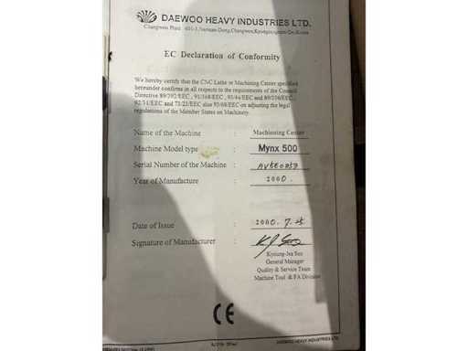 DAEWOO - MYNX 500 - Centro de Mecanizado Vertical CNC - 2000