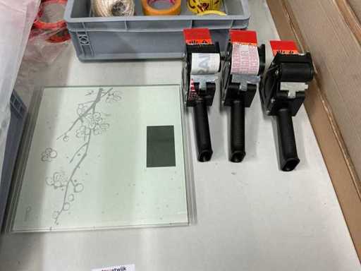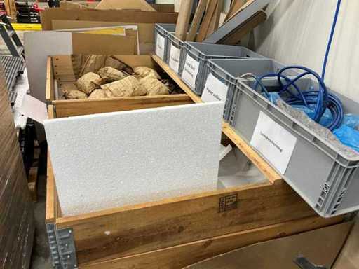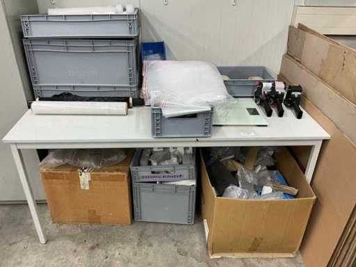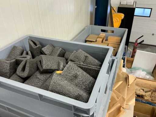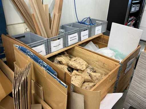 Todo el stock de materiales de embalaje, incluyendo: dispositivos de cinta adhesiva, película estirable, cinta, rellenos, piezas de esquina, cartón, etc. El comprador debe llevarse todo con él.