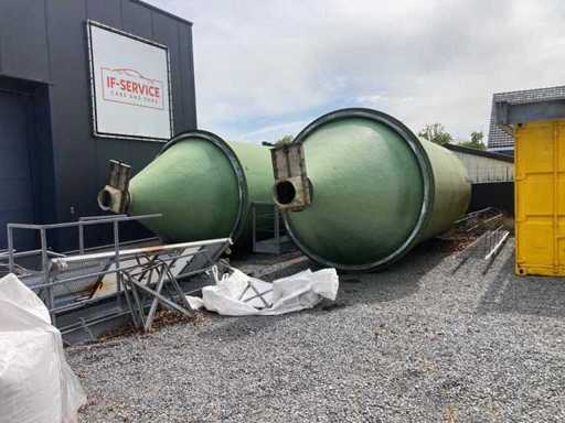 Set of 2 storage silos 40m3 each with metal base Silo length above metal frame 600 cm Metal frame height 570cm Frame size 310cm x 680 cm already disassembled