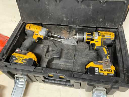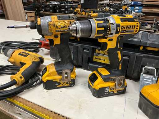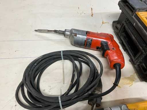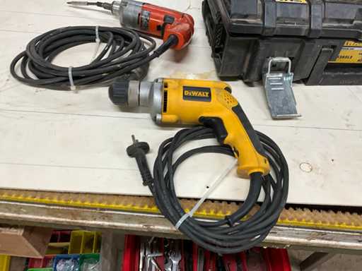Siendo 1 taladro, 1 destornillador y 1 lámpara de advertencia, todos con batería, sin cargador de batería, con 1 estuche, así como 2 taladros eléctricos, 1x Jarra