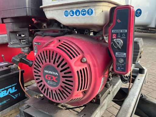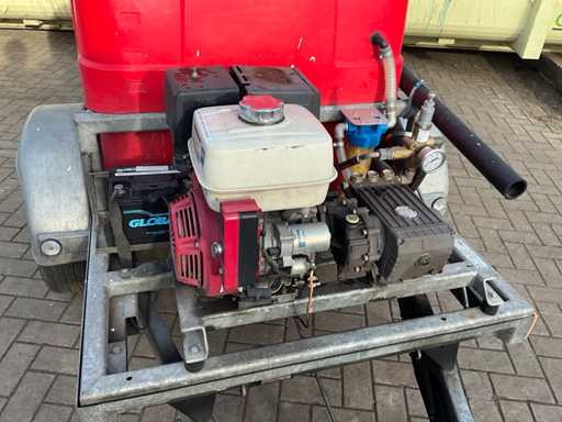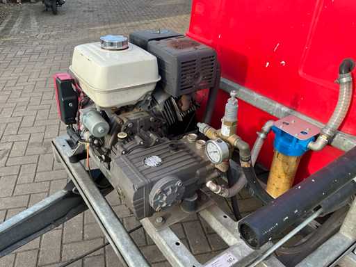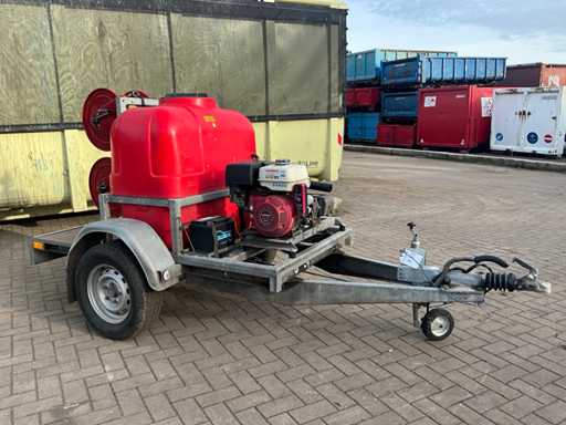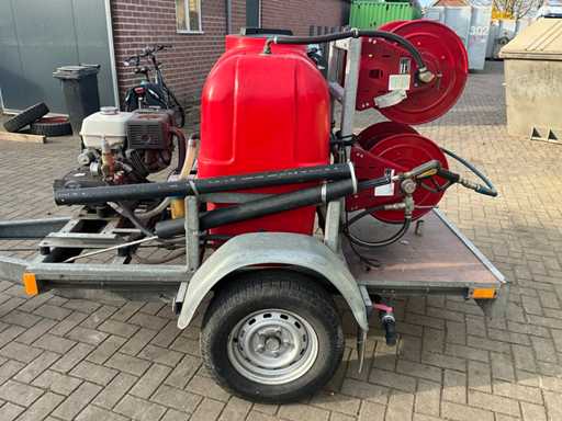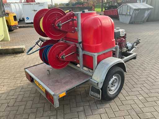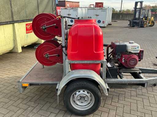 Equipped with: "Honda" engine type: GX390 with electric start, 2x reel, spray lance. On "Happert" trailer, type: R10-1, chassis number: XLHR1000000708450