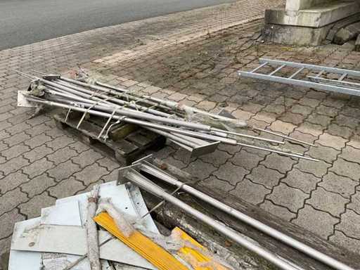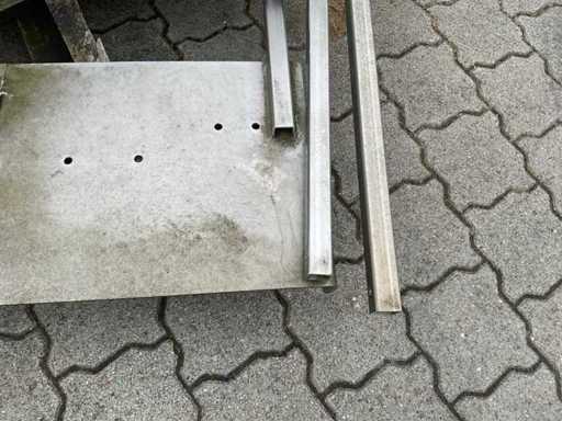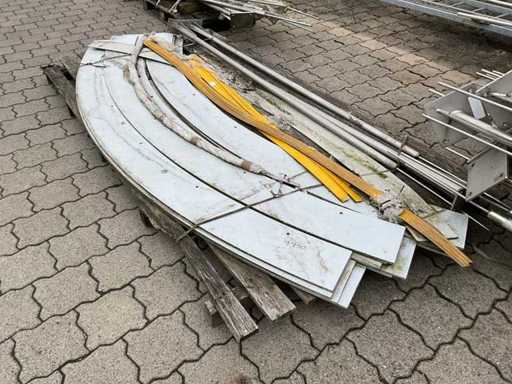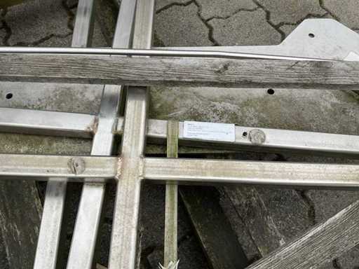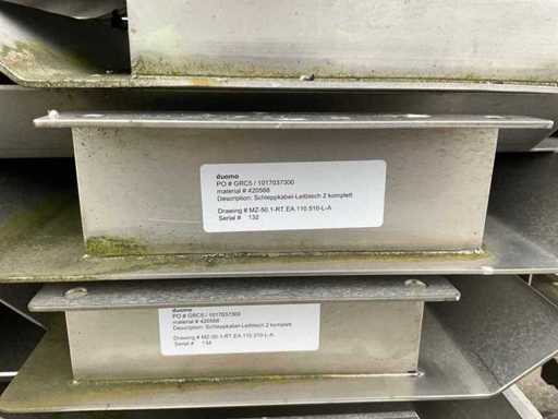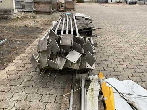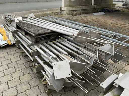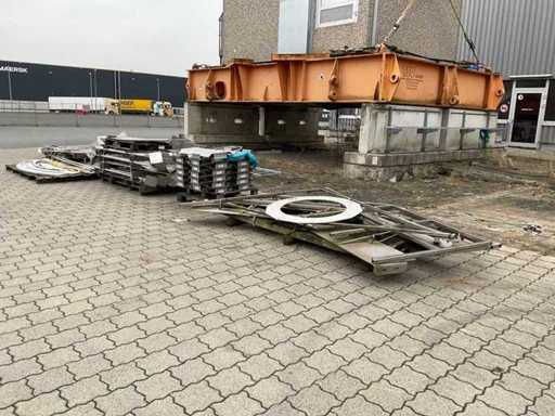 El paquete consta de 5 palés con varios componentes industriales. Las piezas están hechas de acero inoxidable y acero galvanizado en caliente