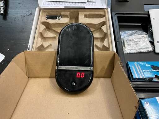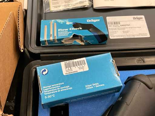 incluyendo 1 indicador de flujo de aire Dräger Flow Check en una carcasa de plástico; 1x dinamómetro de escala colgante analógica kg; escala de precisión 1x;