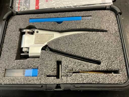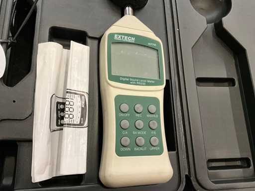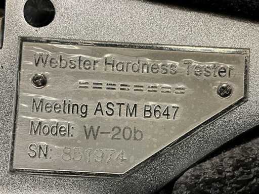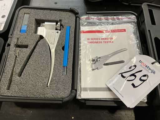 incluyendo un medidor de 1x decibelios Extech 407750 en una caja de plástico; 1x probador de dureza Webster W-20b en caja de plástico; 1x estuche de transporte del tester de dispositivos Nieaf Smitt EazyPAT; 1x Core HCB 0.5T3 de la escama colgante;